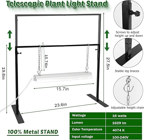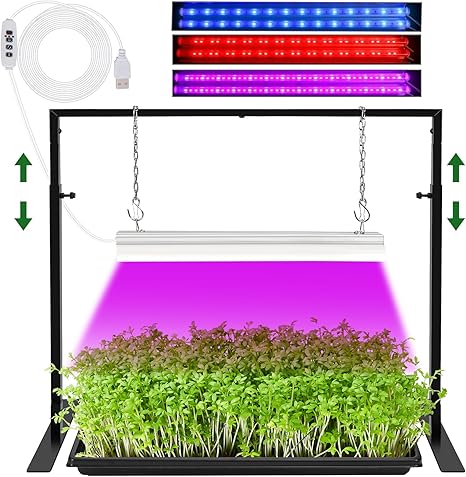 Adjustable Grow Light for Seed Starting with Stand,Double Tube Seed Starter Light Kit with Full Spectrum,LED Grow Lamp with 3/9/12H Timer for Indoor Plants,1.63-2.29ft in Height