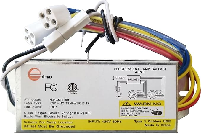 Amax lighting HD4032-120B Amax Lighting HD4032-120B 120-Volt 6.31 in. Electronic Ballast 2 Lamp FC12T9/T5 and FC16T9/T5