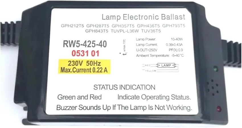 CAARLA Electronic Ballast Lamp Electronic Ballasts 40W Ballast RW5-425-40 for GPH436T5, GPH846T5, GPH793T5, G36T5L