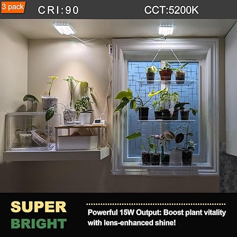 DOMMIA Grow Light, 3-Pack 15W Full Spectrum for Indoor Plants with Optical Lens, Adjustable Brightness and Timer, Compact Plant Lights for Indoor Growing (Natural White)