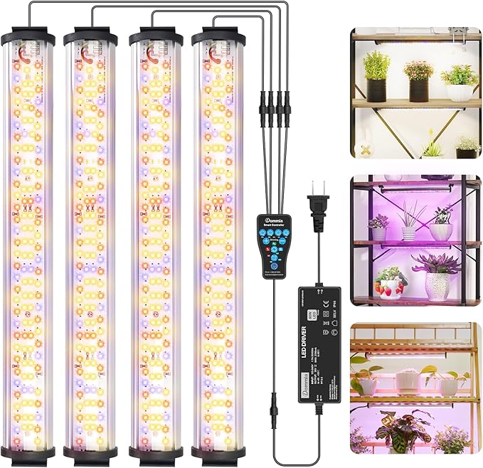 DOMMIA Grow Light, 4X 20W Grow Light Strips Aluminum, Dimmer & Time Settings, 16″ Long, Customizable Full Spectrum Grow Lights for Seed Starting/Growth/Flowers (red, Blue, warmwhite)