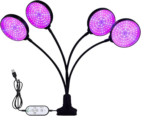 Full Spectrum Grow Light, Sunlike LED Grow Light with Blue Red Light Auto On/Off 4/8/12H Timer 5 Brightness Leves Clip Plant Growing Light for Indoor Plant lings Full Spectrum