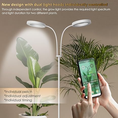 - Multi-functional plant lights for indoor growing: Featuring dual control options via controller and APP for convenient and easy operation. Offers 3 spectrum modes (Seedling, Vegetative, Flowering) with stepless dimming. Customize settings for timing, individual light operation, and more.By individually controlling each light head, one plant light can provide the required spectrum and light exposure time for two different plants.