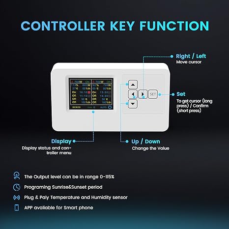 - Controller with Temperature Protection: Use temperature measurement and temperature protection settings. The light will automatically turn off when the indoor temperature exceeds the preset maximum temperature value.