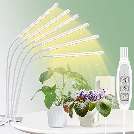 Grow Lights for Indoor Plants Full Spectrum, 4000k/660nm, 3800Lumens LED Grow Lights, High PPFD, Clip-on Growing Lamp with 6/12/18H Timer for Leafy Green, Herb, Succulents & Seed Starting, 6Heads