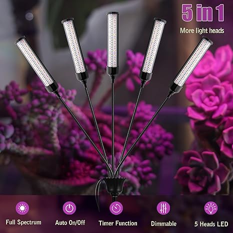 - 【5 IN 1 -WIDE TUBE AND 450 LEDS】The full spectrum grow lights for indoor plants have 5 round tube up to 1.7 inches wide (Not a 1/2-inch round tube on the market) , each of which can be individually adjusted for direction and brightness. Each strip of the LED grow lights has 90 built-in high efficiency LEDs, Boasting an impressive 540 LED and a potent output, having a stronger and wider coverage than similar products.