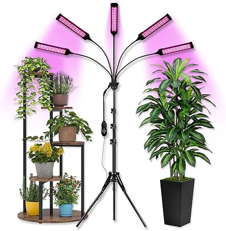 - 【BUILT-TO-LAST】 The full spectrum grow light’s body is made of aviation-grade aluminum materials, With high energy efficiency and low heat output, the grow lights are perfect for extended use without worrying about excessive electricity consumption or heat damage. the 360° rotatable gooseneck for great support, and the tripod of this plant grow light is professionally designed and reinforced by us, which can firmly support 6 light Heads. But please be careful not to put all six arms in the same direction to prevent tipping over.
