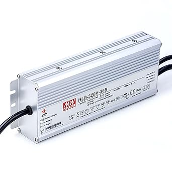 HLG-320H-36B LED Driver: 320W, 36V/8.9A, IP67 Waterproof, 95% Efficiency, Flicker-Free, Dimmable, Wide Input (90-305VAC), UL/CE – for Demanding Lighting Projects