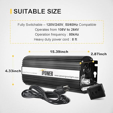 - Package included: 1 x 1000-watt digital dimmable electronic ballast, 1 x heavy-duty power cord, 1 x operating manual.