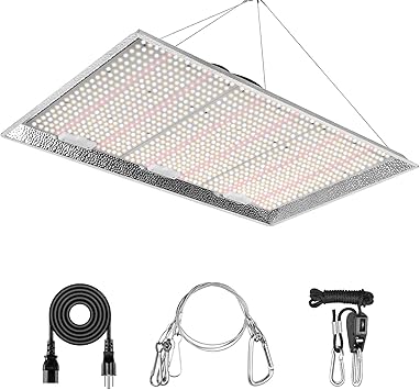 - Package includes: 1 x LED grow light; 1 x stainless steel hanger hook; 1 x 1/8 Inch 8-feet long rope hanger; 1 x user manual; 1 x power cord