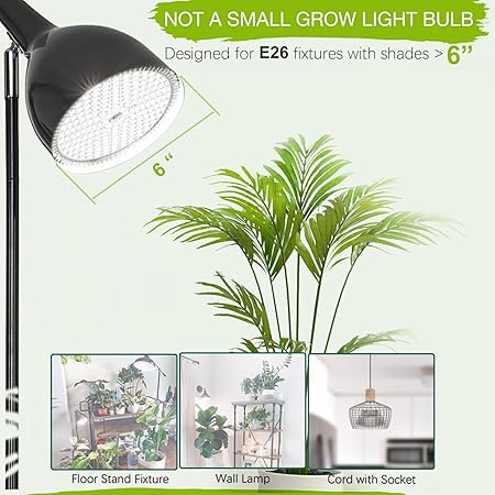 - ⚡ EASY TO INSTALL AND USE: Lonwon LED grow light bulbs are user-friendly and easy to install. Simply screw them into any standard E26 fixture with shades no less than 6″, and they are ready to use. These bulbs are a convenient and efficient solution for providing your plants with the light they need, ensuring easy and effective indoor gardening