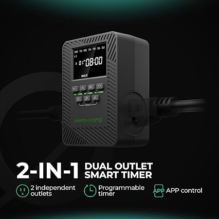 - Smart Remote Control:The outlet timer supports Bluetooth and WiFi, enabling remote control via the MarsPro app, so you can manage your devices anytime, anywhere.