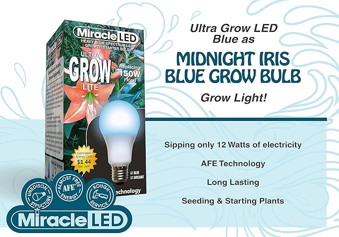 - MIDNIGHT IRIS BLUE Seeding and Starting power gives your young plants the Blue Spectrum light they crave. This sick brew promotes thick leaves and bold, aromatic flavors in your plants!