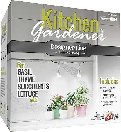 Miracle LED Kitchen Gardener Designer Line Indoor Grow Kit – Includes 2 Absolute Daylight Full Spectrum 100W Replacement Grow Bulbs & 1 2-Socket Cord Fixture with Sproutmatic Timer (4-Pack)