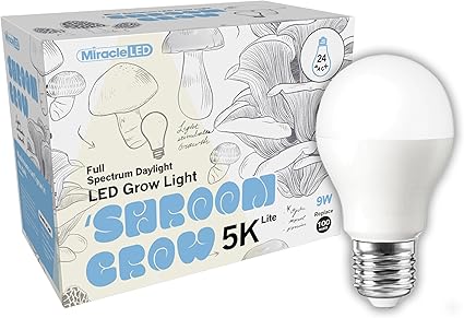 Miracle LED Shroom Grow Indoor LED Grow Bulbs for Oyster, Shiitake, Lions Mane Mushrooms ect. with Absolute Daylight Full Spectrum Replace 100W LED Grow Bulbs (24-Pack)