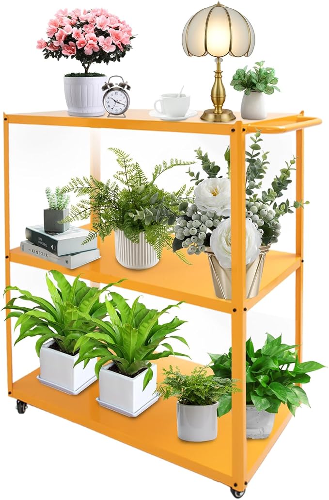 - Wheels with Fixed Lock: Equipped with 4 industrial wheels, 2 of which have fixed locks, this plant stand offers both mobility and stability. You can easily move or securely lock the shelf into the desired position according to change of seasons or external light angle. The plant stand with grow lights for indoor plants is easy to install and does not require any tools.