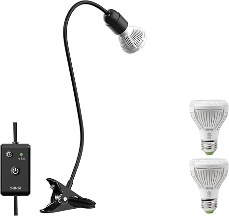 SANSI LED Grow Lights for Indoor Plants, Lifetime Free Bulb Replacement, 150W Full Spectrum Gooseneck Clip Plant Grow Light, Plant Light with Timer 4/8/12 Hrs + 2 Pack 10W Grow Light Bulb