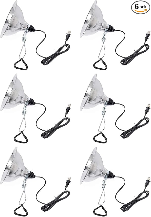 Simple Deluxe Clamp Lamp Light Socket with 8.5 Inch Aluminum Reflector, Suit for Max 150 Watt Lamp (No Bulb Included) with 18/2-Gauge 6 Feet Cord, 6-Pack