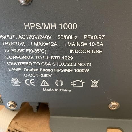 - 1000W Digital Ballast, 120/240V Fires both Single Ended and Double Ended in MH or HPS Lamps