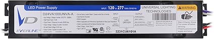 Universal Lighting Technologies D24VA100UNVA-A Dimmable 0-10V LED Driver, 24Vdc, 100W, 4.1A, 120-277V