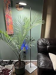 I purchased this for my majesty palm. Not sure what difference this light has made since I only got the plant a month ago. I like the timer settings and different light modes. My very favorite thing about this lamp, and what I was really looking for while shopping for this type of product, is how the cord strings thought the hollow base of this lamp. All the others I’ve seen the power plug connects to a cord near the head of the lamp. There’s nothing I dislike more in a living space than visible cords. So my only issue was how unstable it was on my living room carpet. I couldn’t adjust the top of the lamp to its fullest height without it tipping over or on the verge of. Thankfully my father is a tile man and was able to cut me this unique piece from porcelain to sit over the base of the lamp, and now it’s very sturdy! If they could make the bottom of their base heavier and more stable than this product would be perfect.